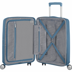 Kõvakohver 55 cm, 8-rattaline, sinine (Stone Blue), laiendatav, TSA koodlukk, American Tourister Soundbox